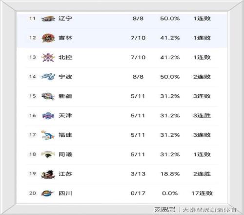 ④、四川17连败继续垫底。