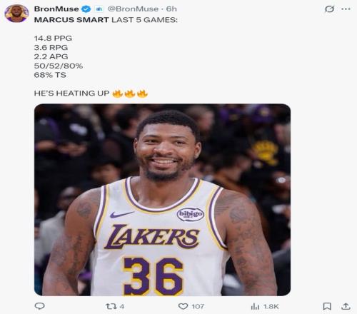 湖人媒体是这样评价斯玛特:斯玛特是让人意想不到的第三得分点,他在第四节无疑是湖人攻防两端最出色的球员,巨大的三分球命中建立巨大的领先优势。